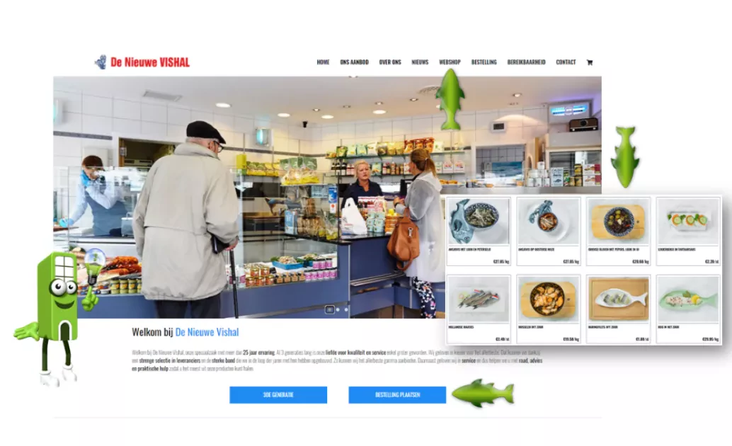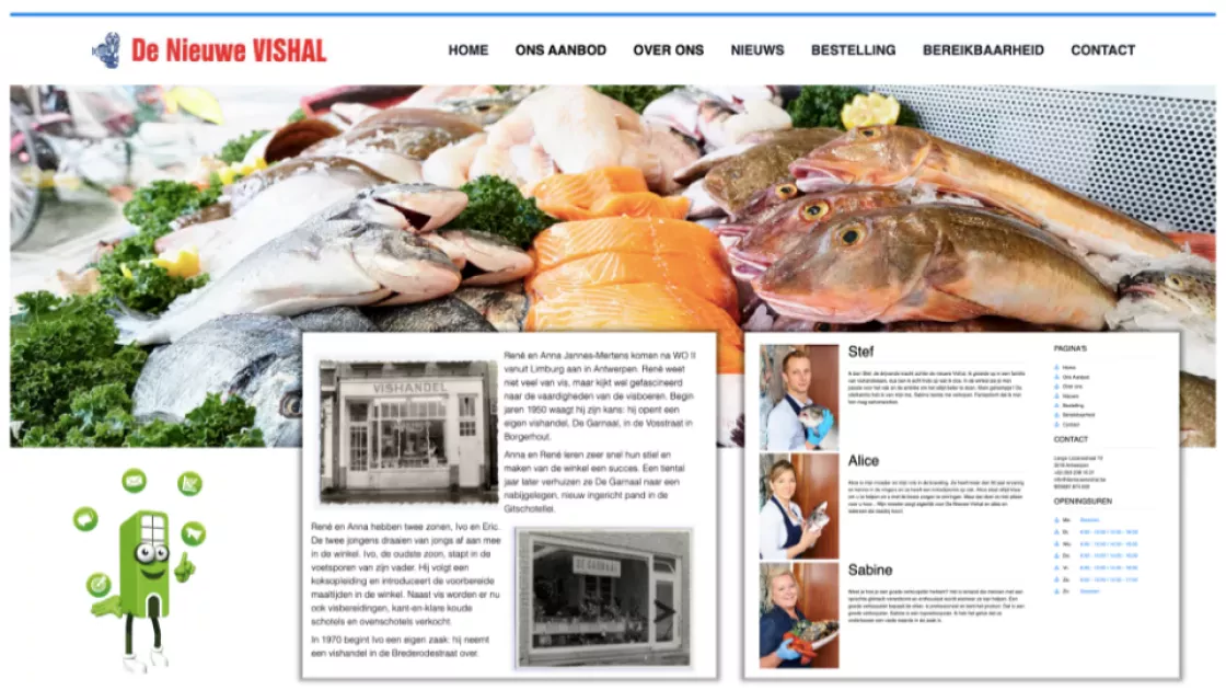 En voortaan kan je ook online je visjes bestellen bij Stef van De Nieuwe Vishal! Oneindig veel keuze in de verse vis en toebehoren. Vis met vel, zonder vel, met ajuin, zonder ajuin... de keuze is enorm. Het was een ferme klus! De categoriën werden opgedeeld, de prijzen uitgezet volgens de diverse opties, levering of afhaling, .... Het CMS van Het-Groene-Huis werd gekoppeld aan het nieuwe kassasysteem van Stef. De samenwerking tussen De Nieuwe Vishal, Touch Systems en Het-Groene-Huis leverde een mooi resultaat op.